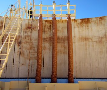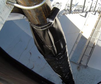 VAPOR-GUARD®VT是最初的测量导杆套设计,由Mesa ETP开发,用于减少地上储罐的挥发排放。它具有独特的可折叠设计,以确保套子展开和折叠不会干扰浮顶。“VT”专有封套提供了储罐运行时的安装方式,并提供了卓越的蒸汽减少设计。MesaThane层压聚氨酯材料是VAPOR-GUARD®VT测量导杆套设计中的标准部件。MesaThane提供卓越的耐磨性、灵活性、耐化学性和U/V性。其他材料可用于满足特定的储罐条件。